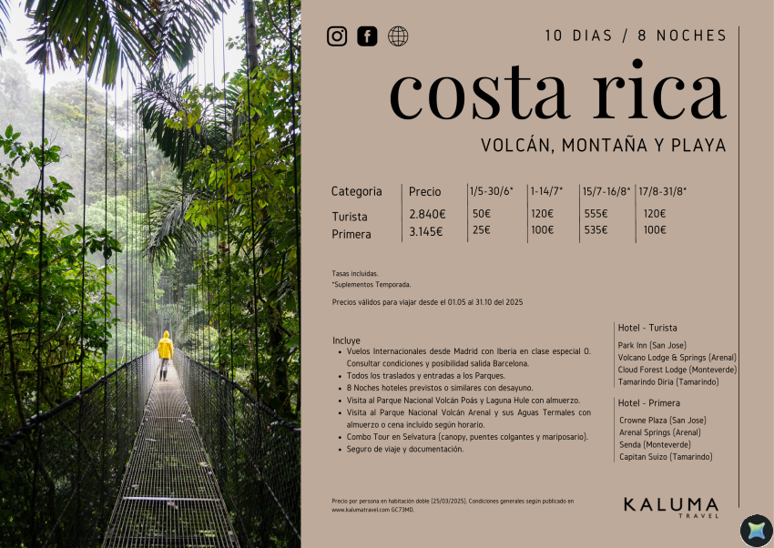Costa Rica Volcán, Montaña y Playa 8 noches - Salidas Diarias hasta Diciembre desde 2.825 €